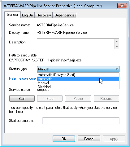 Confirm there is an entry of"ASTERIA WARP Pipeline Service"and double-click it.