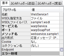 | WSDLファイルパス | remoteFile | - | WSDL指定方法がファイルの場合に使用するWSDLファイルを指定します。 ここで指定するWSDLファイルは実行時および設計時に読み込まれ、使用されます。 |