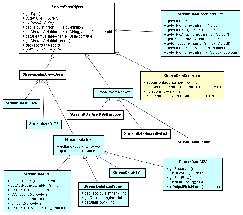 ストリームファクトリはデザイナー上で定義されたストリームプロパティとフィールド定義を保持し、ストリームを生成するためのFactoryクラスとなります。