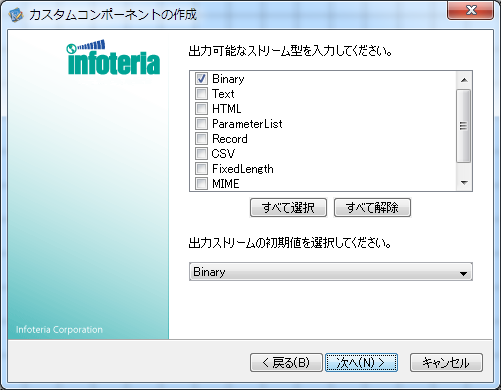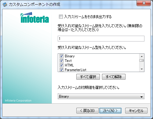 作成するコンポーネントで受け入れるストリーム型にだけチェックを入れて下さい。