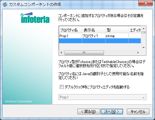 カスタムコンポーネントに定義するプロパティの設定を行います。