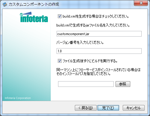 複数のカスタムコンポーネントをひとつのjarファイルにまとめる場合、2つ目以降のコンポーネントではウィザードの2ページ目で既存のbuild.xmlがあるフォルダ