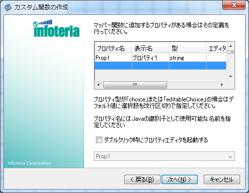 マッパー関数をダブルクリックした時に何らかのプロパティ設定を行う場合は「ダブルクリック時にプロパティエディタを起動する」に