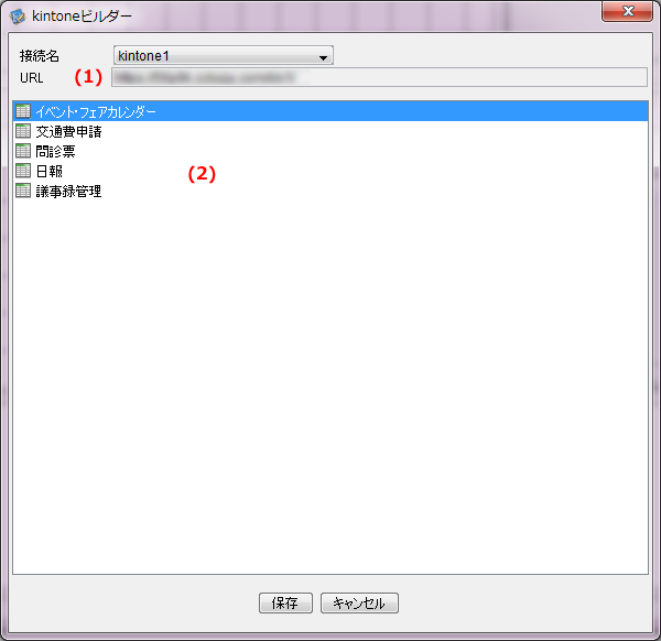 コネクション名 が設定されていない場合、kintoneビルダー起動時にコネクションダイアログが表示されます。