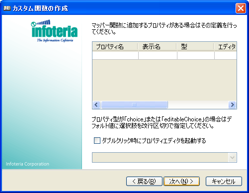 マッパー関数をダブルクリックした時に何らかのプロパティ設定を行う場合は「ダブルクリック時にプロパティエディタを起動する」に