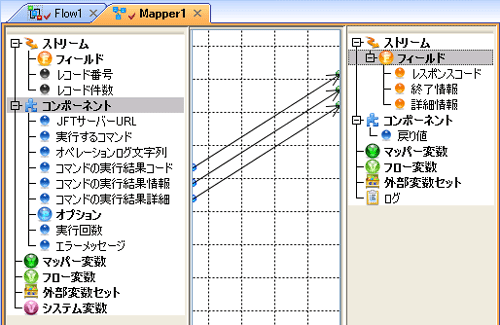 | 汎用 | なし | コンポーネントの入力ストリーム | なし | コマンドインタフェース呼び出しが異常終了した場合:システム変数の「エラー処理」パラメータ値1~4に、ExitCode、ResultInfo、ResultDetail、Actorが返されます。 |