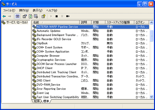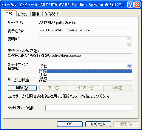 「ASTERIA WARP Pipeline Service」というエントリがあることを確認し、ダブルクリックします。