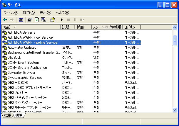 「ASTERIA WARP Pipeline Service」というエントリがあることを確認し、ダブルクリックします。