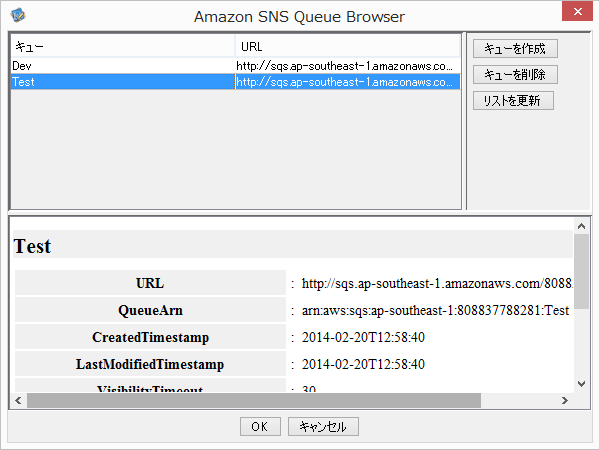 この画面ではキューURLとキューの新規作成と削除を行うことができます。
