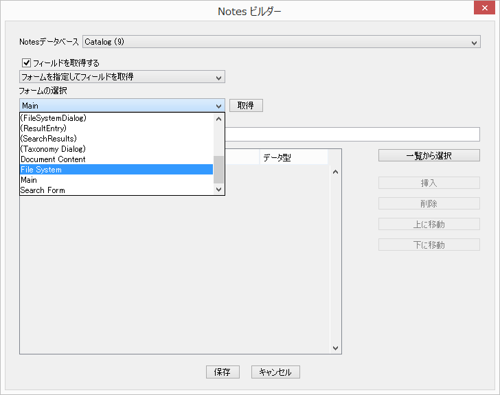 フォームを指定してフォームのデザイン情報からフィールドを取得する場合に選択します。