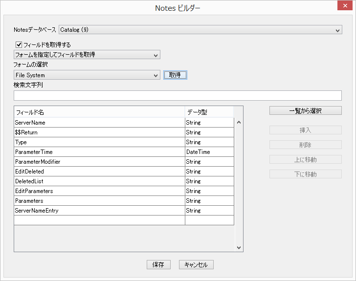 Notesビルダーは、コネクション名に定義されているDominoサーバーからNotesデータベースの一覧を取得し、そのデータベースの特定のフィールドを取得する専用ツールです。