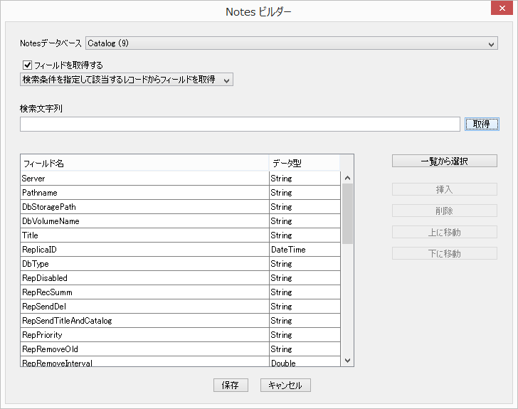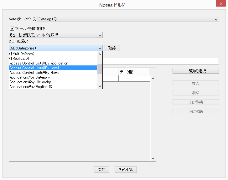 | 数値 | Notesフィールドの数値データがIntegerとして取得できます。 値が空の場合は「0」となります。値が複数ある場合は最初の値となります。 |