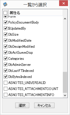 処理の対象となるNotesデータベースをドロップダウンリストから選択します。