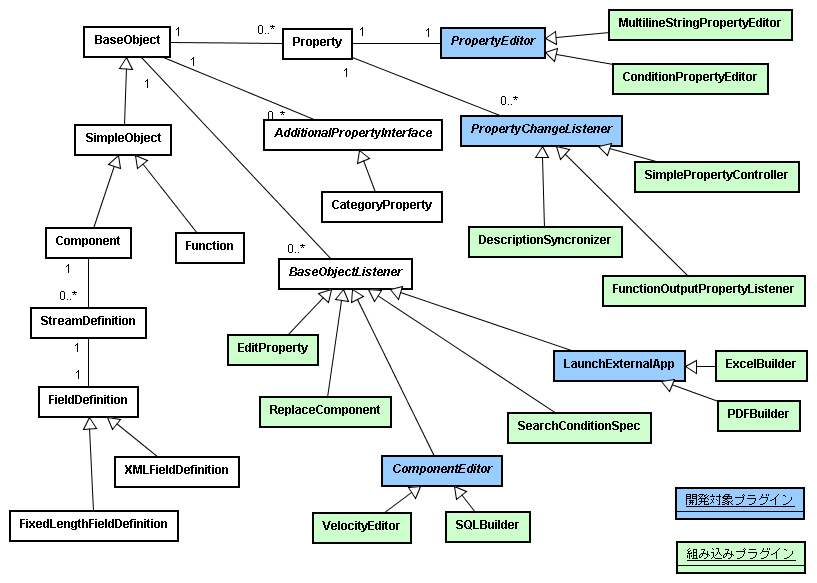 緑色は標準で組み込まれているプラグイン具象クラスの一部です。